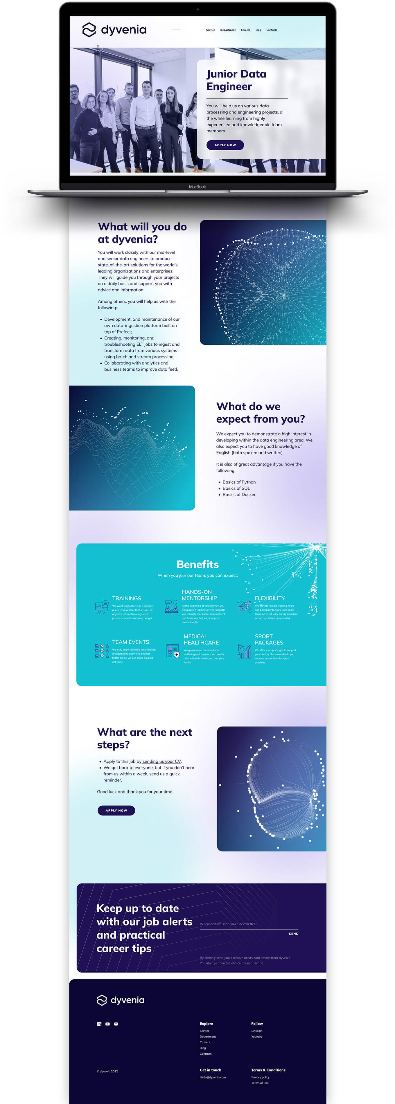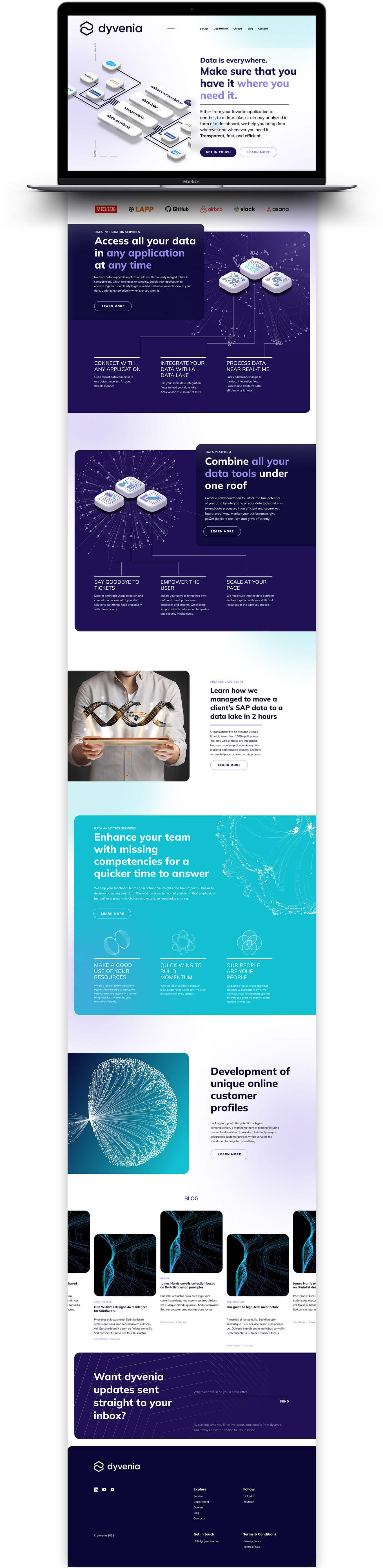 dyvenia homepage was created in collaboration with invisio.si. The team was agile and quick, we spent only two weeks from design to implementation of the live version. The website is based on WordPress. I also illustrated 3D infographics and adapted the icons to fit the style. The website was designed in the Figma app.