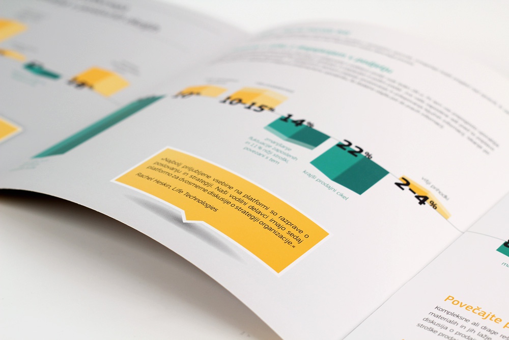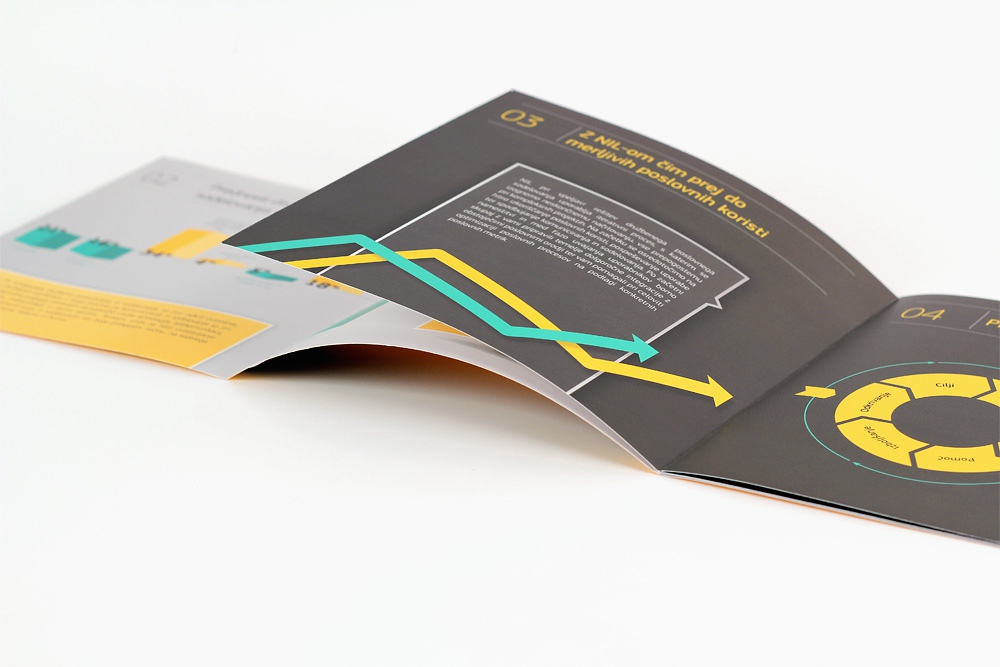 I had to extract interesting parts from the content and prepare infographics. I always strive to have shorter content, and rather visually present information. This way, customers can get the message faster. As this booklet was a part of a group of booklets, I kept the thread with the others.